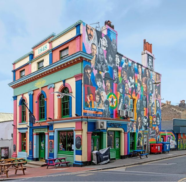 Renowned for its colourful, creative street art, the bohemian seaside resort of Brighton has long been a magnet for street artists, including Glimmertwin, Aroe and Cassette Lord. Take a self-guided tour and explore the vibrant North Laine district, where you can visit the site of Banksy’s famous Kissing Policemen, and the legendary dead musician mural by REQ and Sinna both adorning the Prince Albert pub. Wind through its cobbled streets and witness the Parrot mural on Gloucester Road and The Saint on Kensington Street, but don’t miss the giant Alice in Wonderland by Eelus on Hannington Lane, which was inspired by author Lewis Carroll, a frequent visitor to the Regency resort.